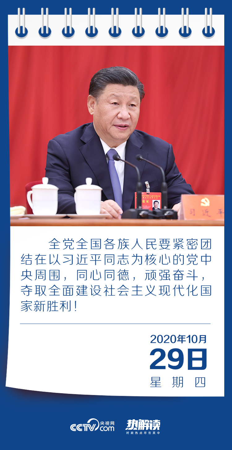 10月29日,中国共产党第十九届中央委员会第五次全体会议在金色的秋天里胜利闭幕。全会由中央政治局主持。中央委员会总书记习近平作了重要讲话。