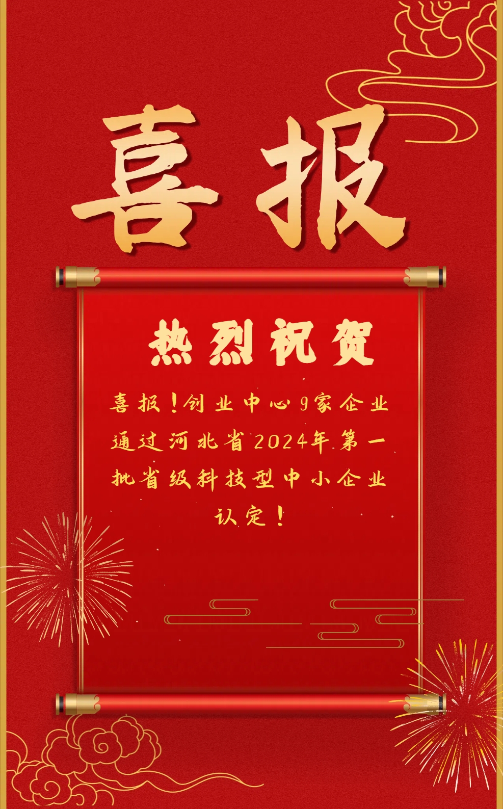 喜报!创业中心9家企业通过河北省2024年第一批省级科技型中小企业认定!