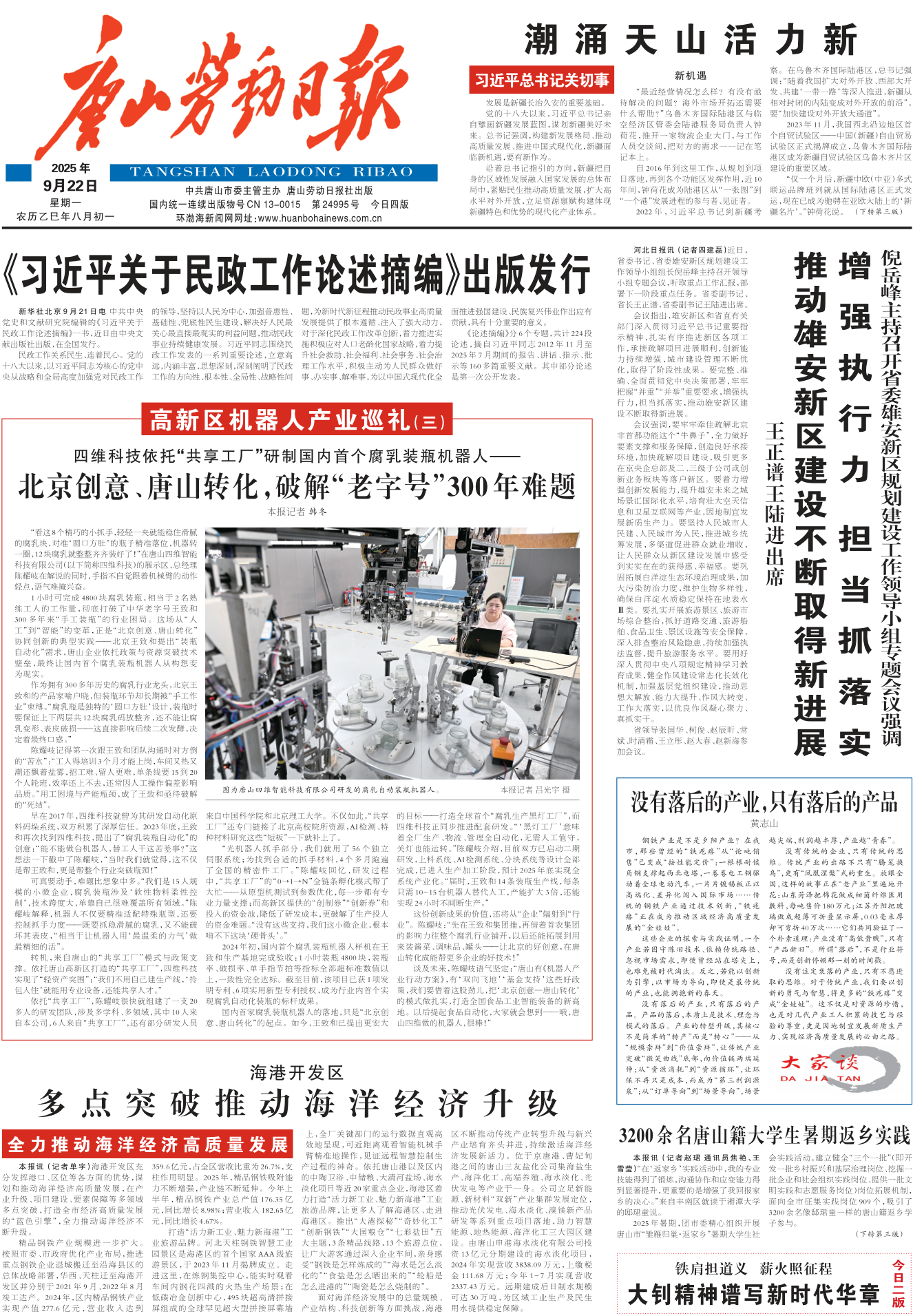 在创新攻坚的道路上,李景生带领团队用人工智能优化生产流程,让老厂房里长出“智慧大脑”;推动产学研深度融合,吸引青年人才扎根唐山重工;主导制定的8项国家、行业标准,成为同行借鉴的“唐山样本”。