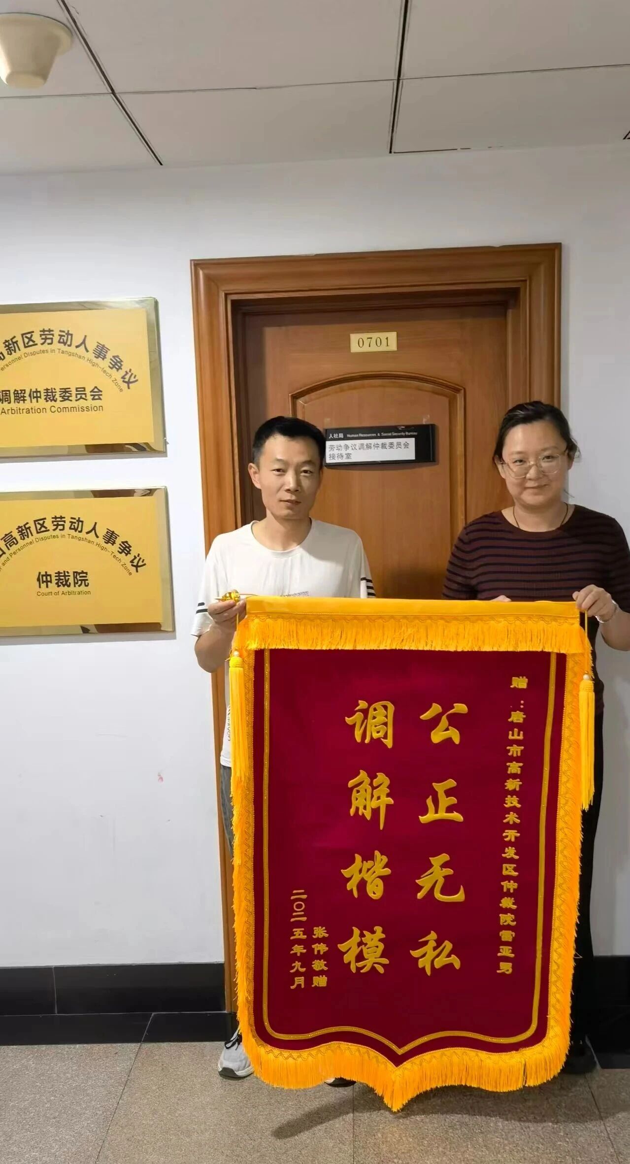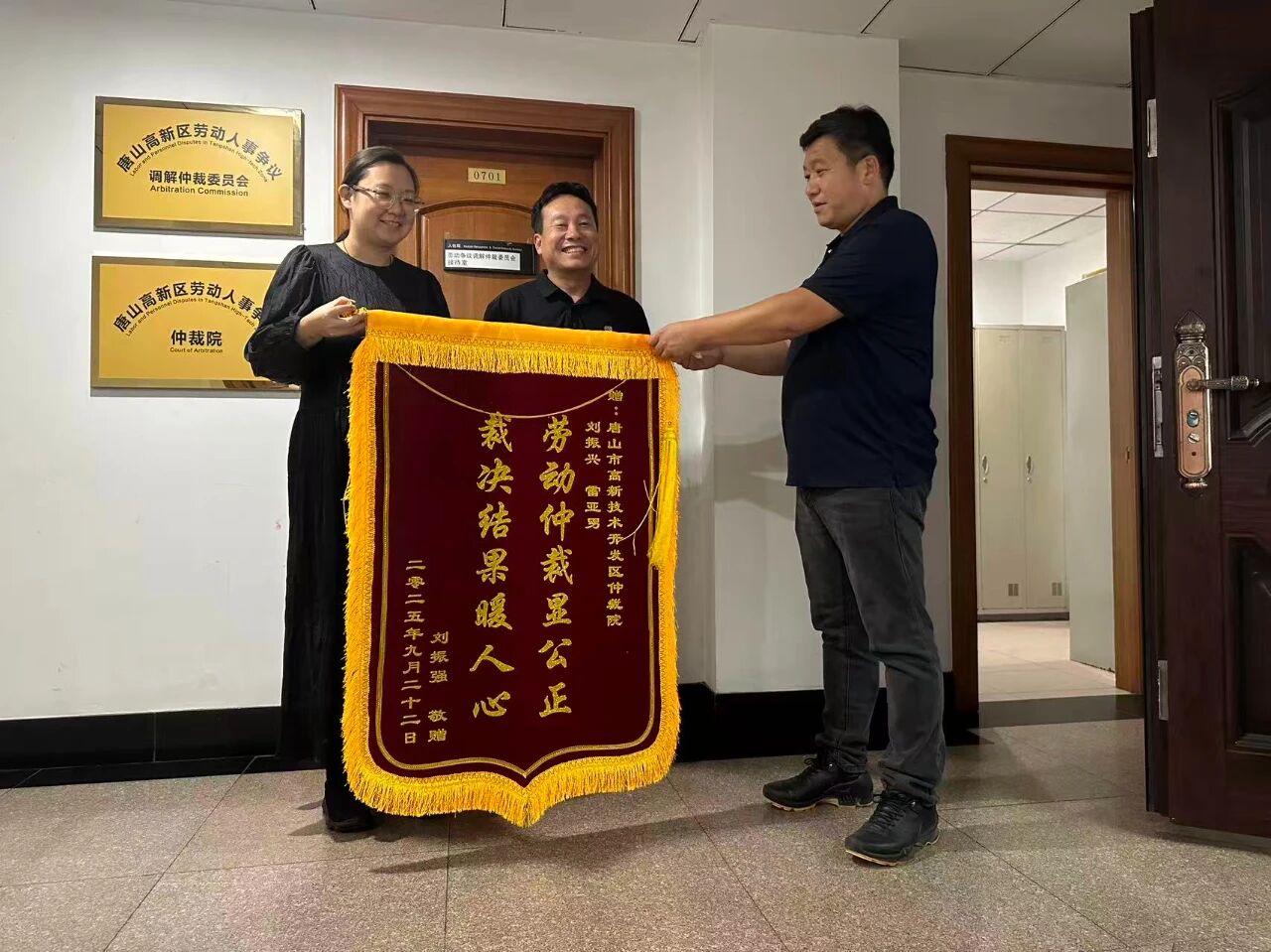 仲裁程序依法有序推进,既坚守公正底线,又兼顾效率,赢得了双方由衷认可。为表感激,劳动者送来锦旗,上书“为民解忧伸援手、仲裁公正暖人心”;施工单位也献上锦旗,题有“劳动仲裁显公正、裁决结果暖人心”。两面锦旗,字字饱含深情,句句满是真诚,最终都落在“暖人心”三字上,深刻折射出群众对公正服务的信赖与赞许。