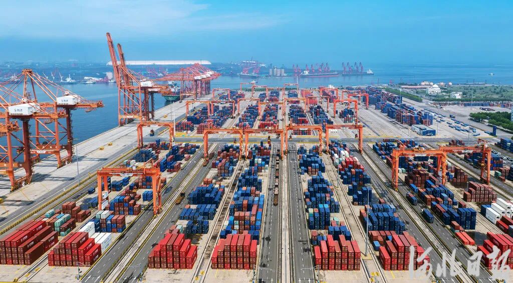 近日,无人机拍摄的唐山港京唐港区集装箱码头堆场。河北日报记者 赵杰 摄“