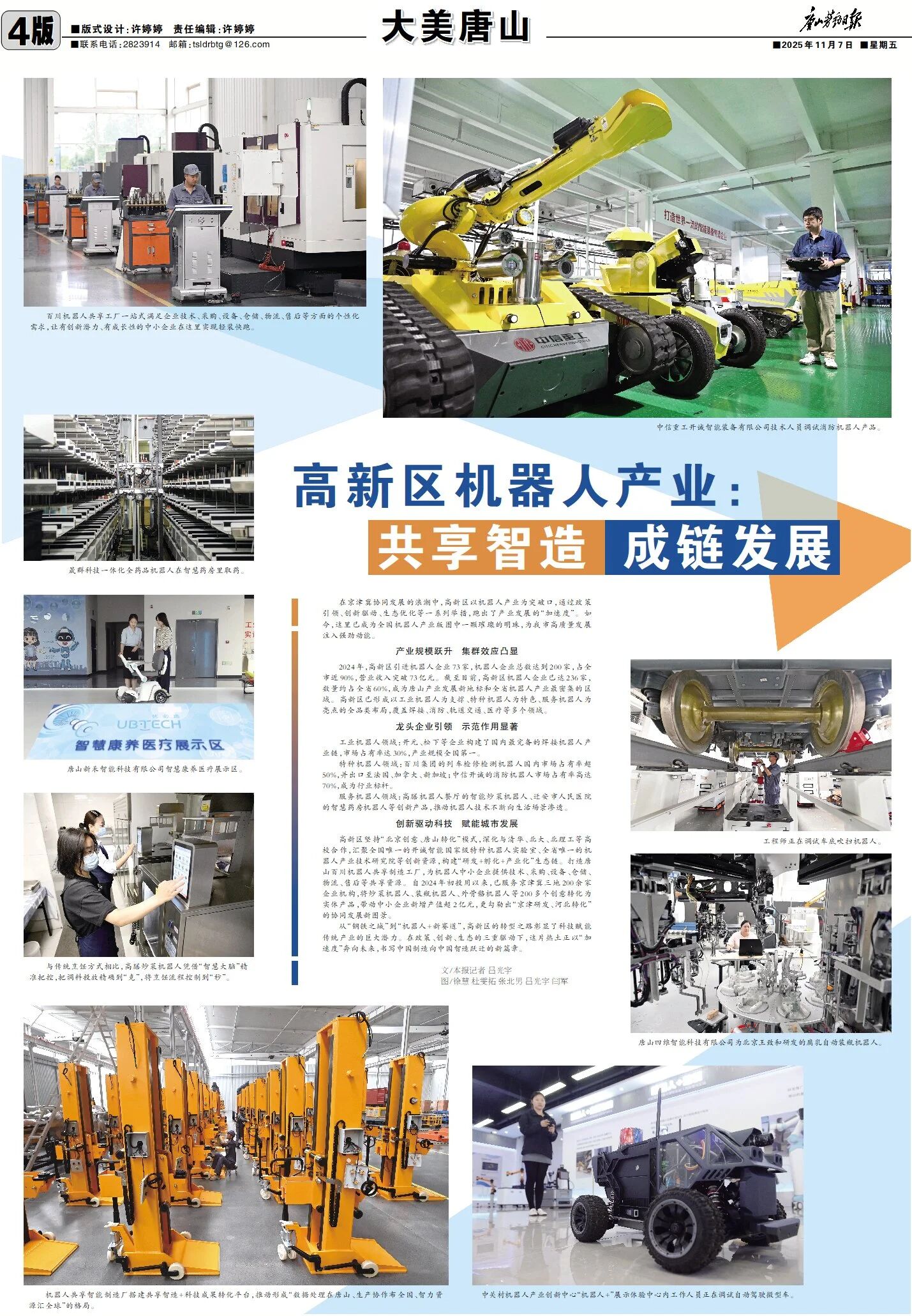 近日,唐山劳动日报以《高新区机器人产业:共享智造 成链发展》为题,整版聚焦高新区以机器人产业为突破口,通过政策引领、创新驱动、生态优化等一系列举措,跑出了产业发展的“加速度”。现将原文转载如下: