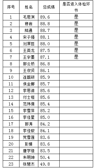 唐山高新区街道办事处公开招聘社区网格员考试笔试面试已结束,现将个人总成绩公布如下,详见附件。请标注进入体检环节的考生于2025年11月17日前到唐山中心医院完成体检,体检项目和标准参照《公务员录用体检通用标准》执行。体检费用自理。