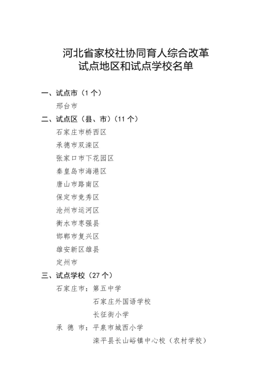 根据《河北省教育厅关于遴选河北省家校社协同育人综合改革试点地区和试点学校的通知》要求及相关工作安排,在市级教育行政部门组织申报、审核和推荐基础上,经综合评议,公示,最终我区崔家屯小学被河北省教育厅授予河北省家校社协同育人综合改革试点校(农村)。