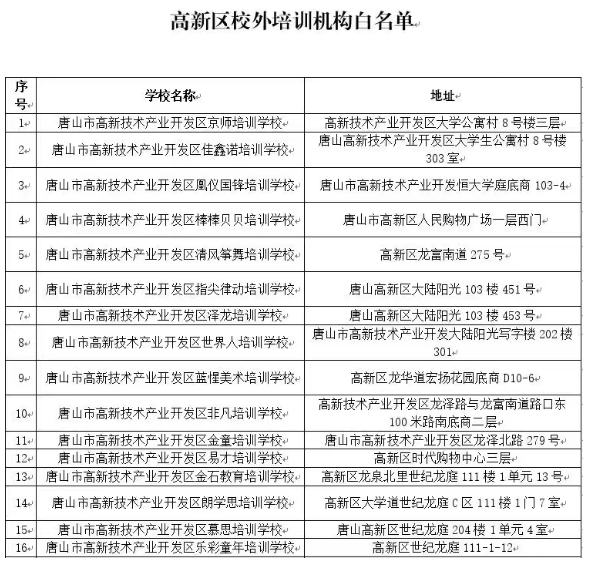 高新区就如何选择校外培训机构温馨提示:一是合规的校外培训机构须持有《中华人民共和国民办学校办学许可证》、《工商营业执照》或《民办非企业单位登记证书》等证照,并张贴在培训场所醒目位置;二是与培训机构签订规范的《中小学生校外培训服务合同》;三是一次性缴费时间跨度不超过三个月或60课时,一次性交费不超过5000元;四是培训时间不晚于20:30分;五是学生参加校外培训的选课报名、缴费退费等将全部在银行监管平台进行;六是在法定节假日、休息日及寒暑假不参与义务教育阶段学科类培训。