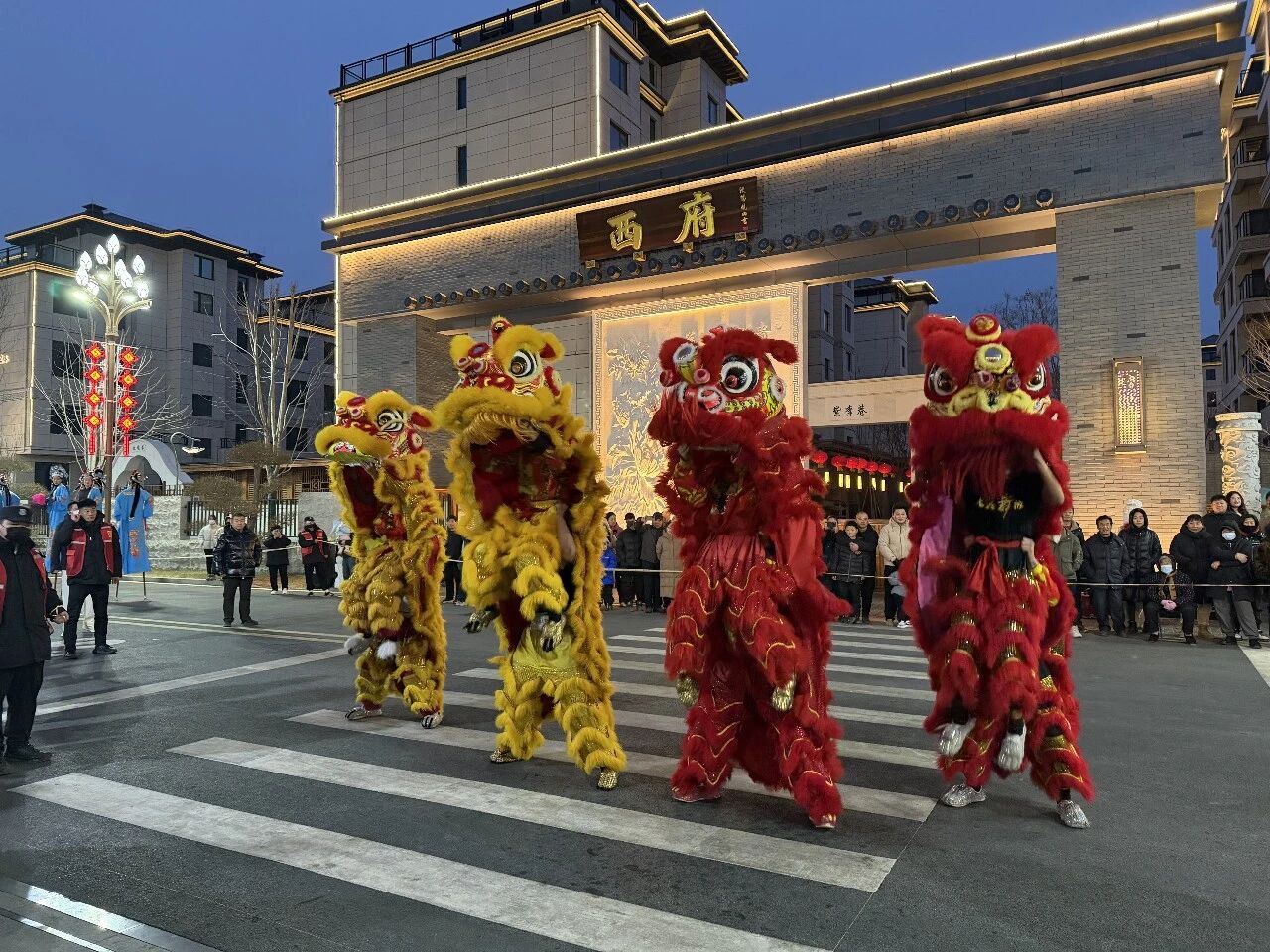 一条条金龙翻腾起舞,一只只雄狮摇头摆尾,活灵活现。此外,热闹的大秧歌、力量感十足的摔跤表演以及雄浑的大鼓,让现场的男女老少目不暇接。大家纷纷拿出手机记录下这些精彩的瞬间,孩童们骑在爸爸的肩头看得入神,现场洋溢着喜庆祥和的节日氛围。