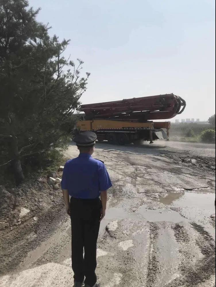 为维护城市道路,执法人员引导重型工程车辆至临时路行驶。
