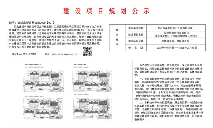 建设项目规划公示-编号唐规高新调整公示2025【001】