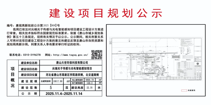 建设项目规划公示唐规高新批前公示第2025【008】号