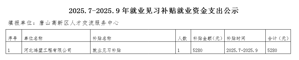 河北鸿堃工程有限公司接收1名毕业2年内高校毕业生参加就业见习,申请就业见习补贴5280元,从就业补助资金列支。